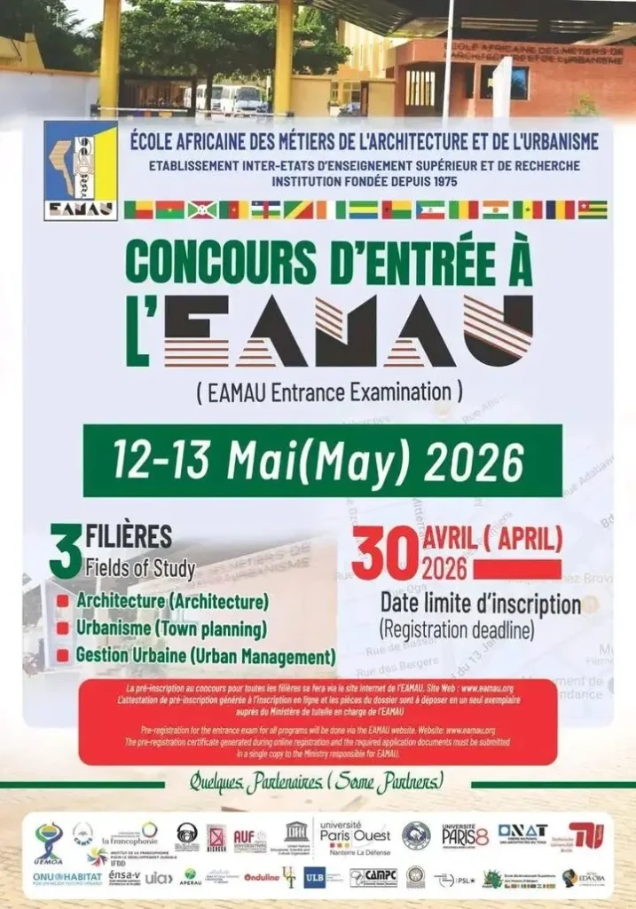 L’École Africaine des Métiers de l’Architecture et de l’Urbanisme (EAMAU) a annoncé l’ouverture de son concours d’entrée au titre de l’année académique 2026.