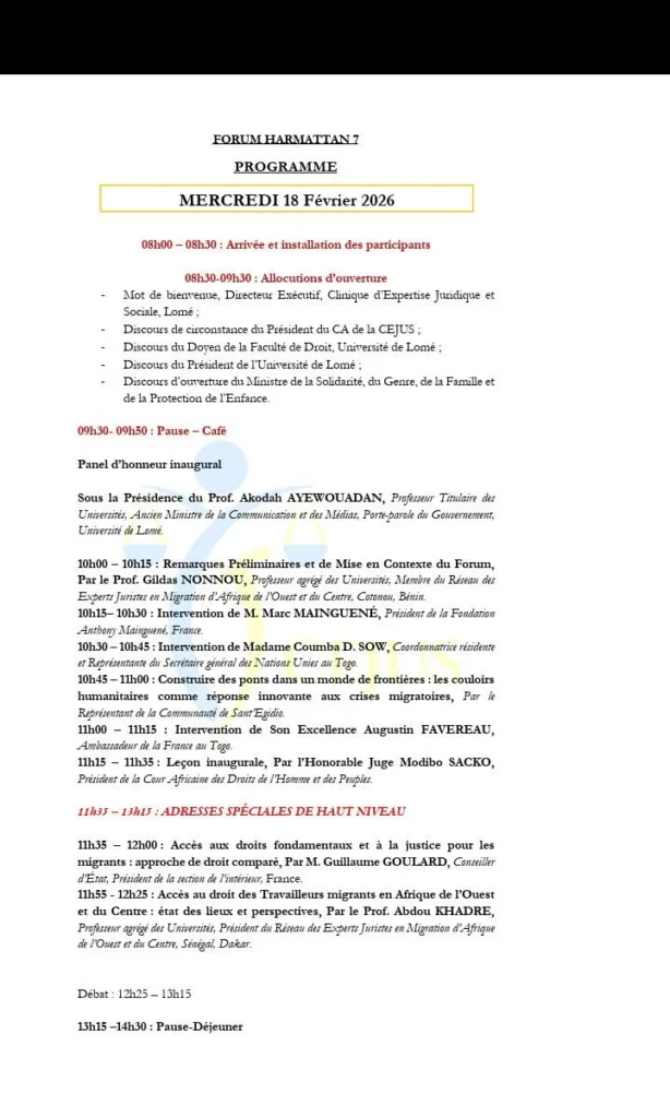 La 7e édition du Forum Harmattan est prévue les 18, 19 et 20 février 2026 de 8h à 17h (GMT) à l’Auditorium de l’Université de Lomé.
