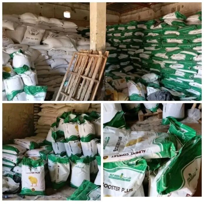 Bilan de l’opération : 200 sacs de 25 kg d’aliments pour volailles périmés et 600 sacs de 25 kg d’aliments pour bétail en reconditionnement douteux