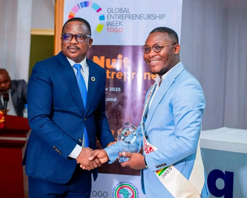 Au cours d’une cérémonie de distinction tenue en fin novembre, il a été fait Ambassadeur de l’entrepreneuriat 2025 par le réseau GEN-Togo (Global Entrepreneurship Network).