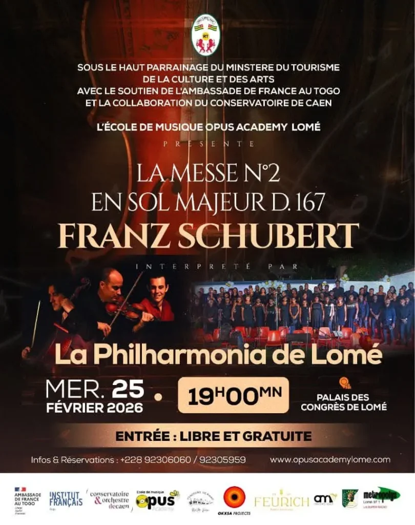 La capitale togolaise se prépare à accueillir le Festival International MasterPiano organisé par l’école de musique Opus Academy. Et pour cela, la Philharmonia de Lomé s’annonce sur ce concert exceptionnel d’une heure au Palais des Congrès de Lomé, le mercredi 25 février 2026.